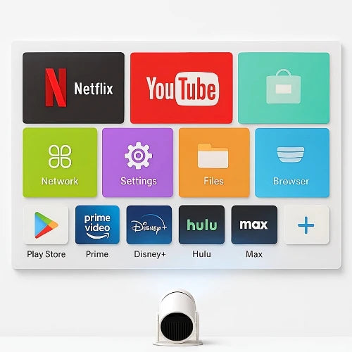 The UHD Beam comes equipped with built-in Android TV, providing instant access to dozens of integrated streaming applications like YouTube, Netflix, Hulu, Prime Video, and more. If you need something specific, simply download any app directly from the Google Play Store.For effortless connectivity, the projector connects seamlessly via WiFi and Bluetooth, allowing you to stream content wirelessly from your phone or tablet. For zero-latency connections, an HDMI port is also included for direct device hookup.